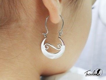 Pendentes de pandeireta realizados en pel, madeira e baño de prata. Dispoñibles en negro, vermello, dourado, azul, branco e verde.