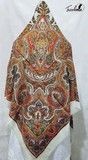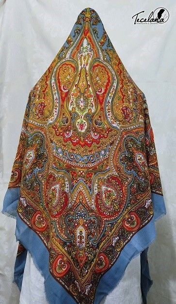 Pañuelo brocado en tamaño 140cm x 140cm (sin contar los flecos). Composición 50% viscosa y 50% poliester. Disponible en azul, dorado, gris, morado y verde (los colores pueden variar debido a la configuración de cada pantalla)