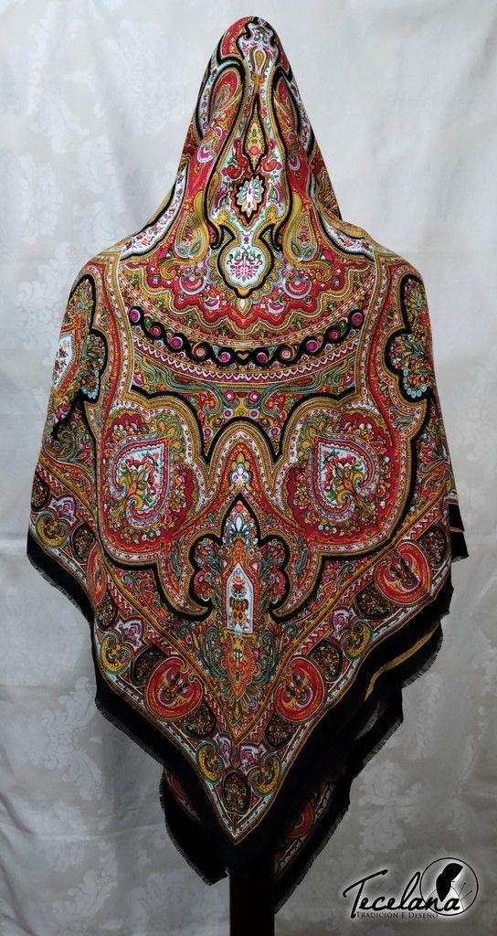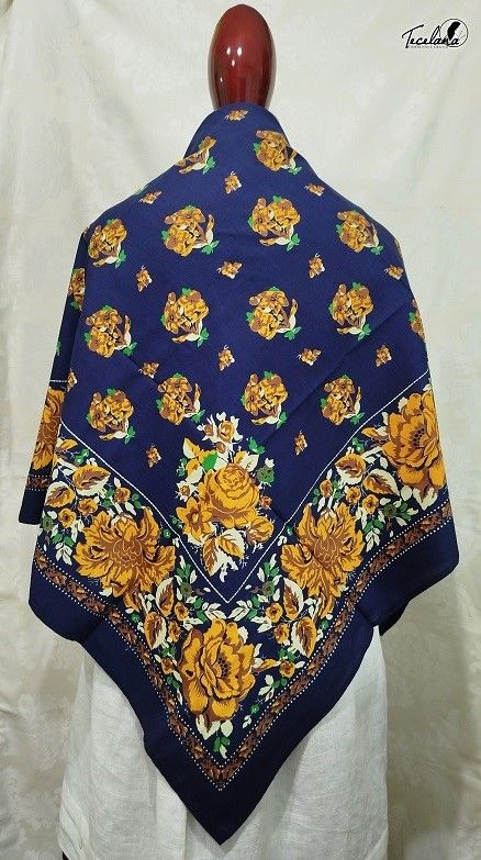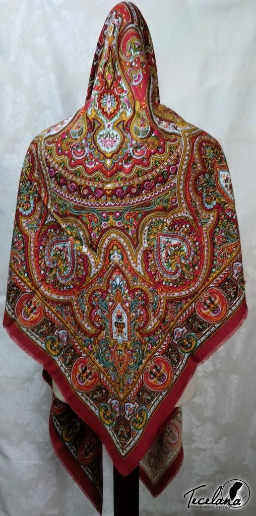Pano galego para cabeza, ou pano de namorar, realizados en mestura de algodón e raión. Medida 90x90cm. As cores poden variar debido á configuración de cada pantalla.